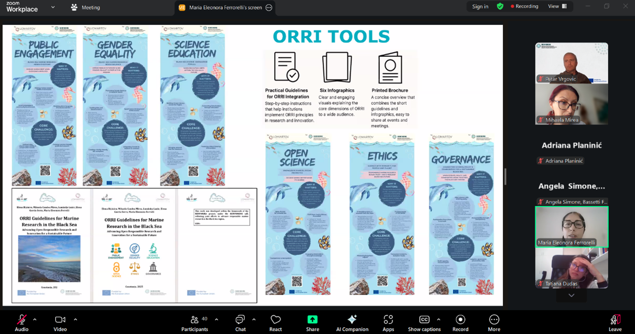 Together with our partner, the National Institute for Marine Research and Development “Grigore Antipa” (NIMRD), our team presented the progress of the REINFORSEA project, an initiative focused on integrating Open and Responsible Research and Innovation (ORRI) principles into marine research within the Black Sea region.